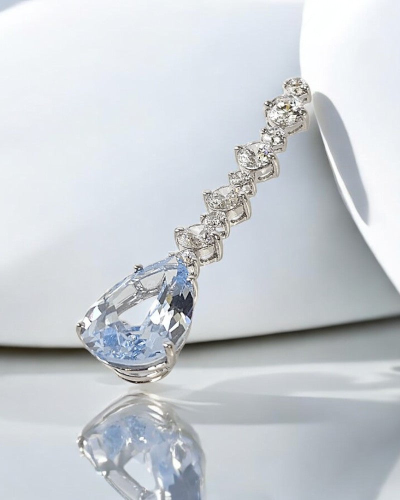 Pendientes de plata y circonitas de color azul aguamarina y blanco engastadas a mano.