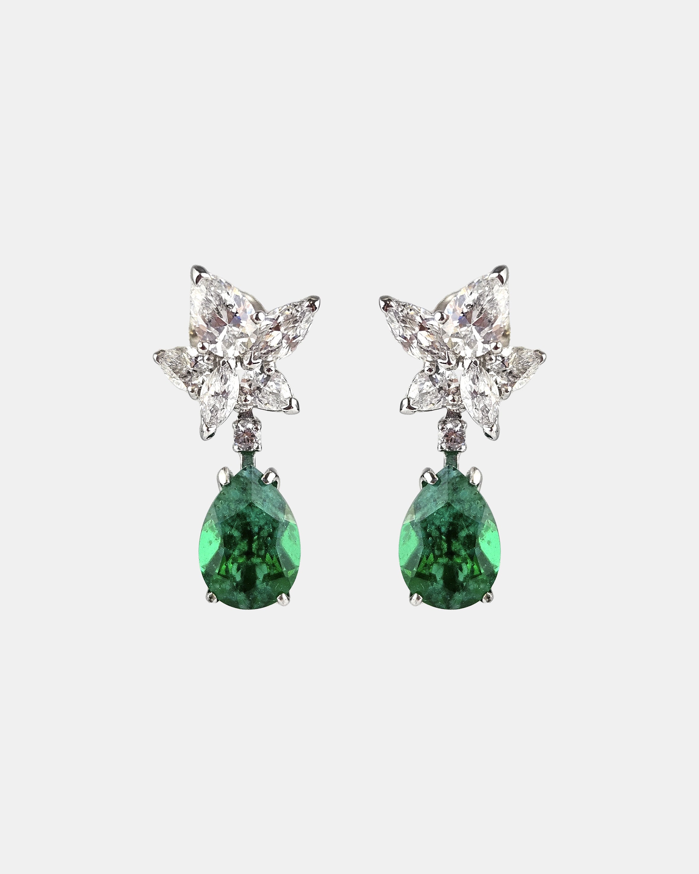 Pendiente en plata y zirconitas blancas y verdes engastadas a mano