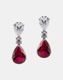 Pendientes de plata y circonitas de color rubí y cristal engastadas a mano.