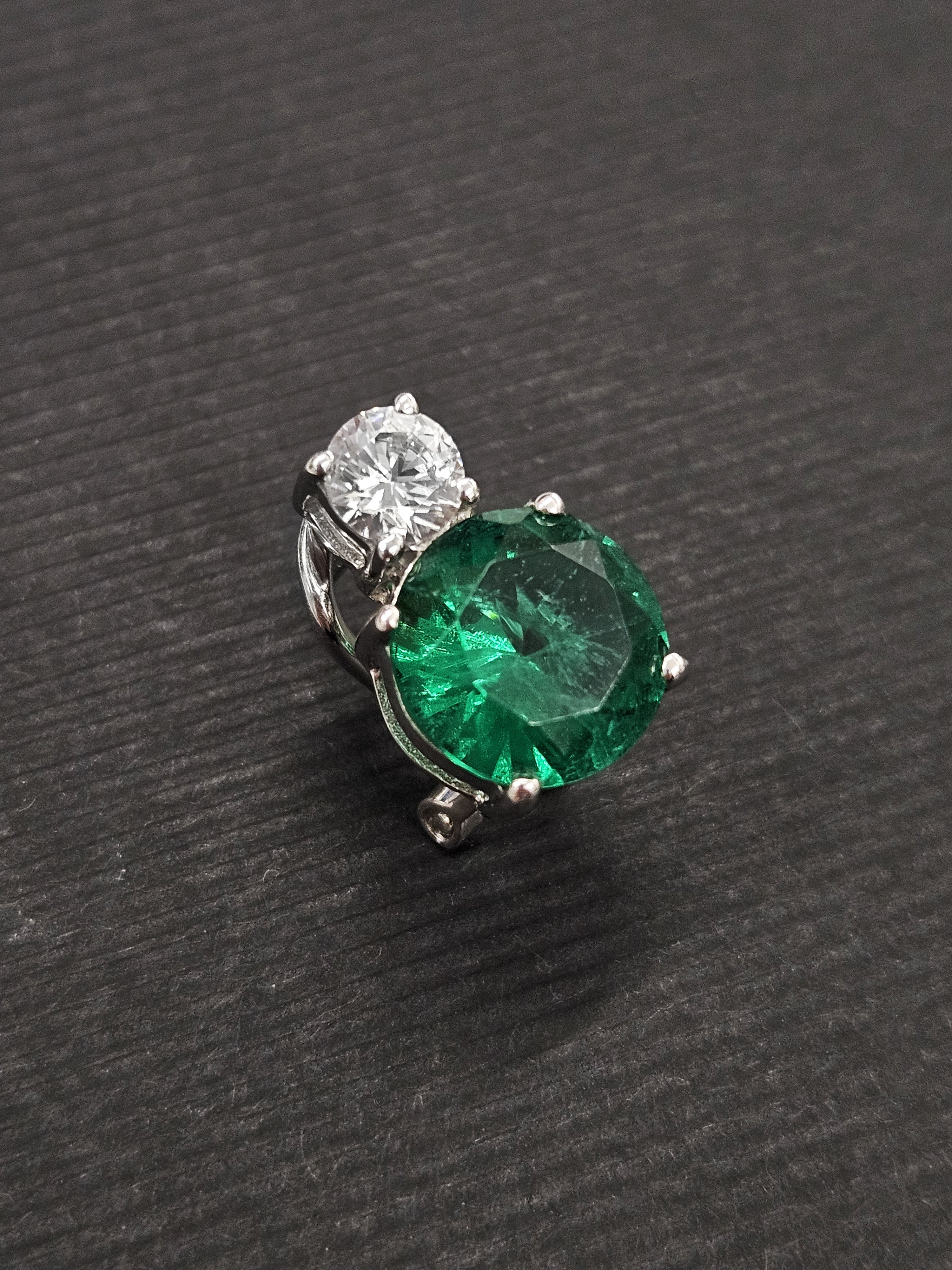 Pendientes de plata con zirconita blanca con pieza en talla brillante engastada a mano de color verde esmeralda