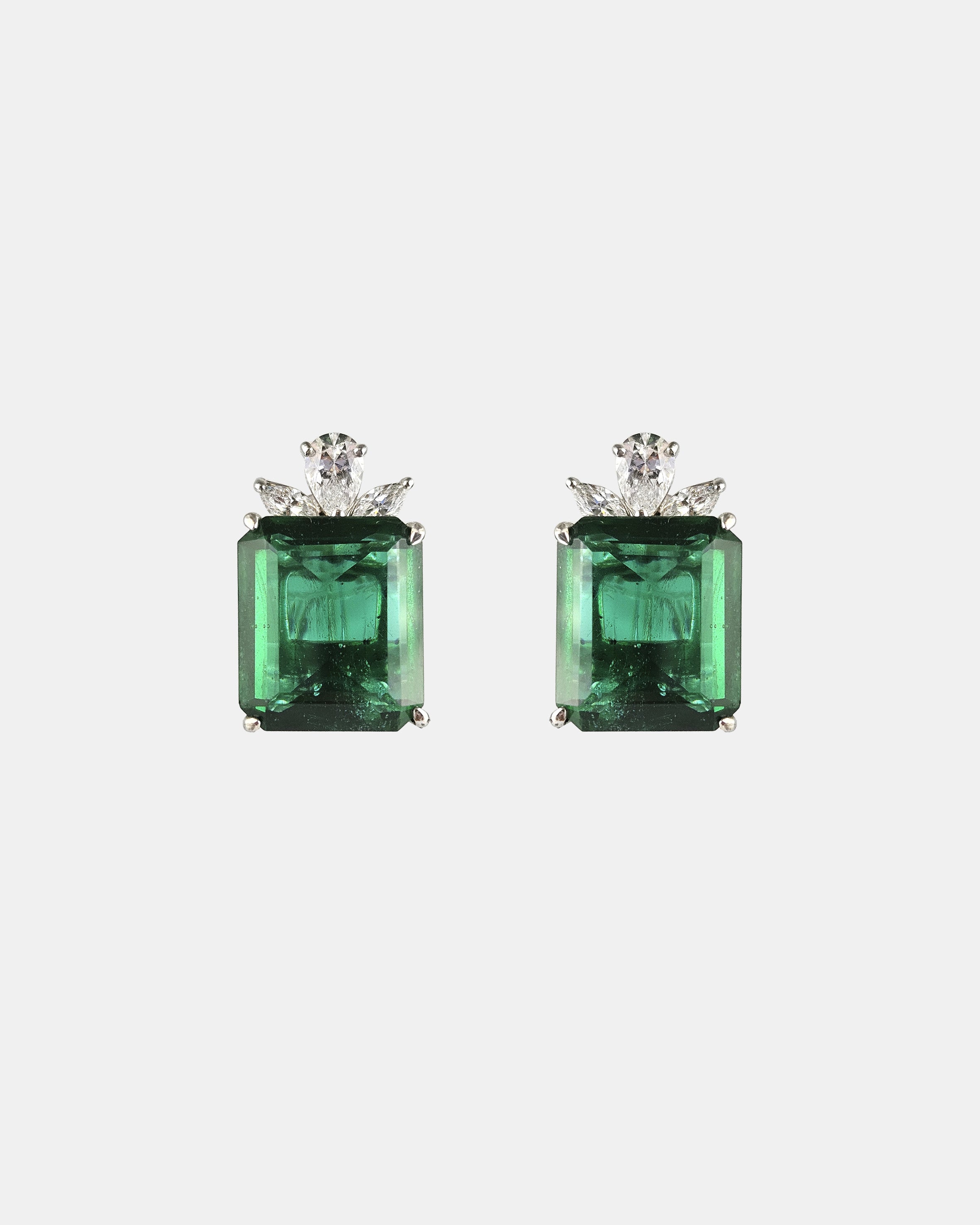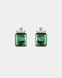 Pendiente en plata y zirconitas blancas y verde en talla esmeralda engastada a mano