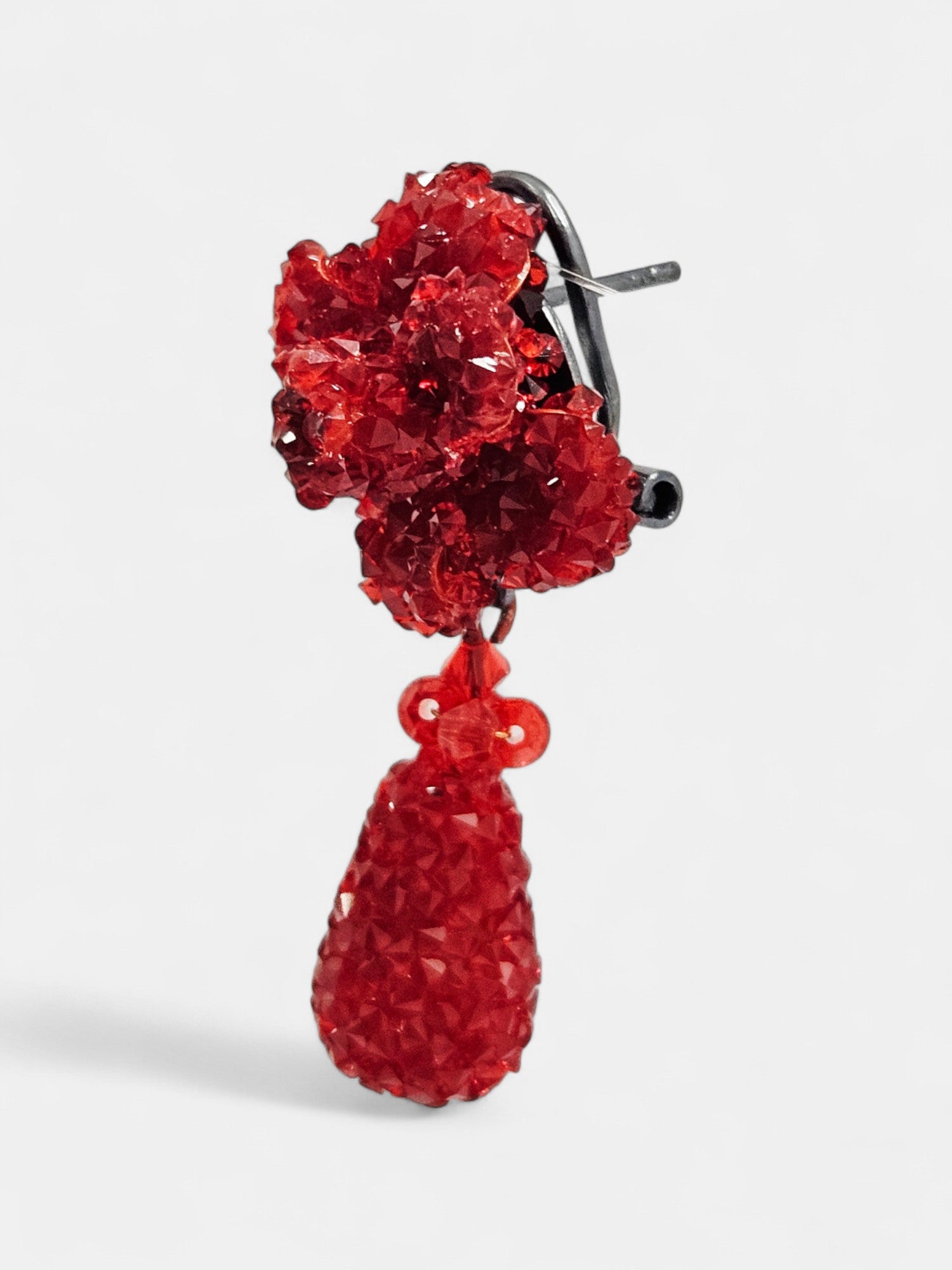 Luce con estilo estos sofisticados pendientes con cristales Swarovski en color rojo, una joya artesanal hecha a mano en España que destaca por su elegancia, color vibrante y diseño favorecedor.