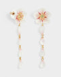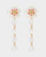 Pendientes bolitas colgantes de flor de sakura blanca esmaltada a mano con pétalos y piedra facetada en el centro.