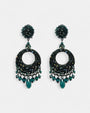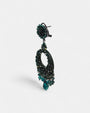 Los pendientes “Verde Estelar” destacan por su brillo único y su diseño circular sofisticado. Están recubiertos de cristales facetados verde intenso, con delicadas lágrimas que aportan movimiento y un destello glamuroso en cada giro.