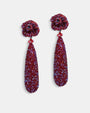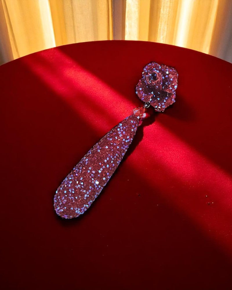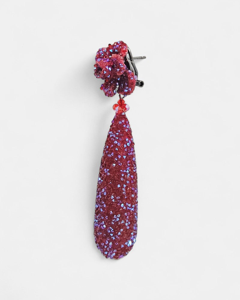 Añade un toque de distinción con estos pendientes de la firma Dublos, una pieza única hecha a mano en España. Diseñados con dos elementos: un cabezal en forma de flor y un elegante lágrima, ambos elaborados en cristal Swarovski con un intenso color rojo cereza con destellos