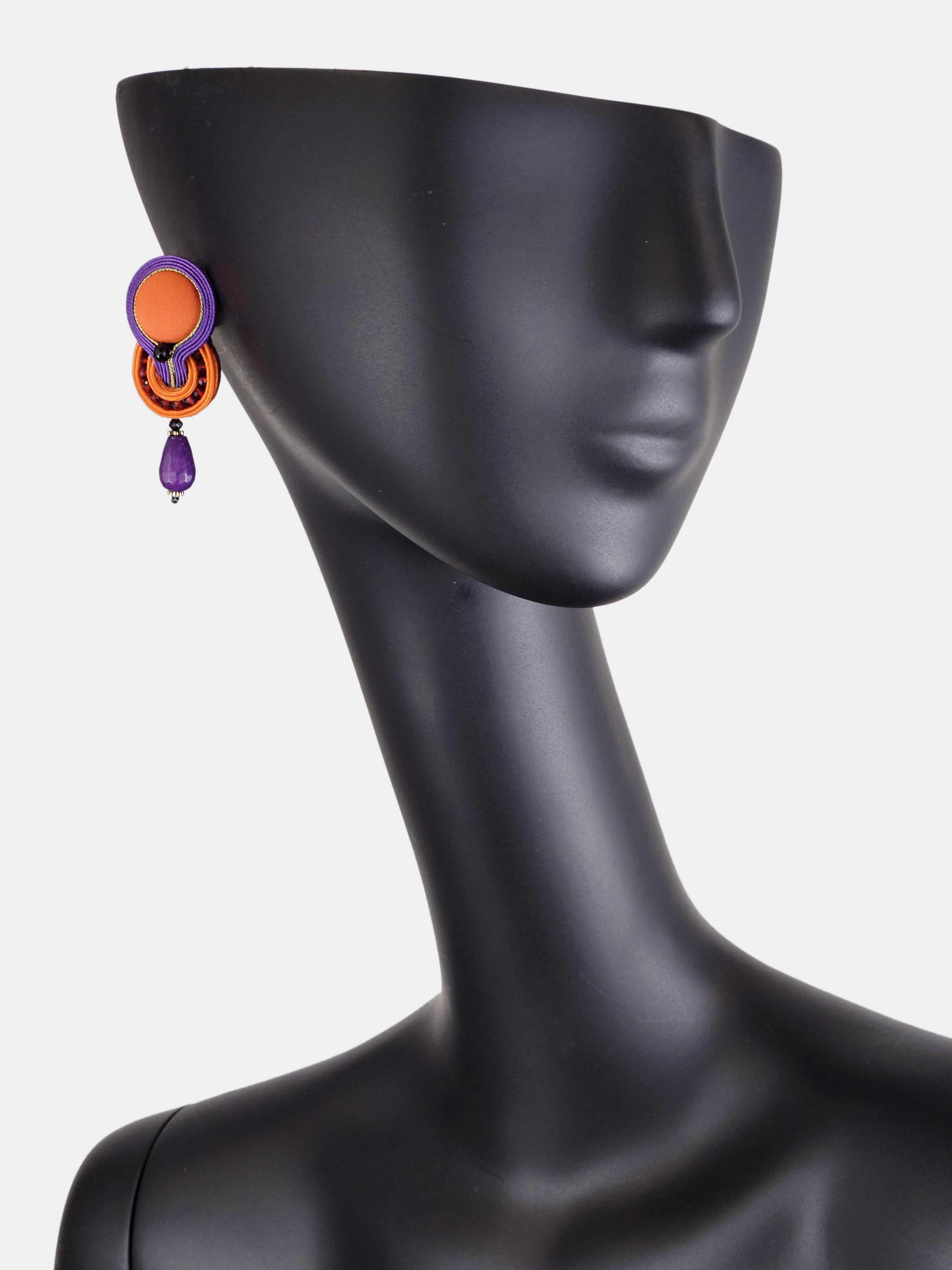 Seleccionamos el modelo Tomassa en su versión Tangarine por su capacidad para actuar como un "iluminador" natural. En Sanci nos fascina la arquitectura textil de esta pieza: cordones de seda en un naranja vibrante y solar que abrazan cristales facetados, creando un juego de texturas exquisito. A pesar de su volumen escultural y su presencia visual, su construcción en técnica soutache los hace increíblemente ligeros, permitiendo llevarlos durante horas sin fatiga. Son la elección del experto para quien busca sofisticación sin sacrificar el confort, una joya que no solo adorna, sino que energiza.