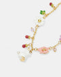 La pulsera Conejito del Bosque de Les Néréides es una oda a la ternura y la naturaleza. Realizada a mano, combina pequeñas flores esmaltadas, hojas verdes y un adorable conejo en porcelana pintada, evocando la magia de un jardín encantado.