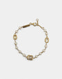 Pulsera de plata dorada tallada a mano con perlas y cristal