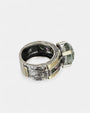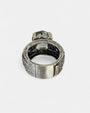 Anillo artesanal de Gabriela Styliano, elaborado en plata oxidada 925 con detalles en oro amarillo de 18 kt.