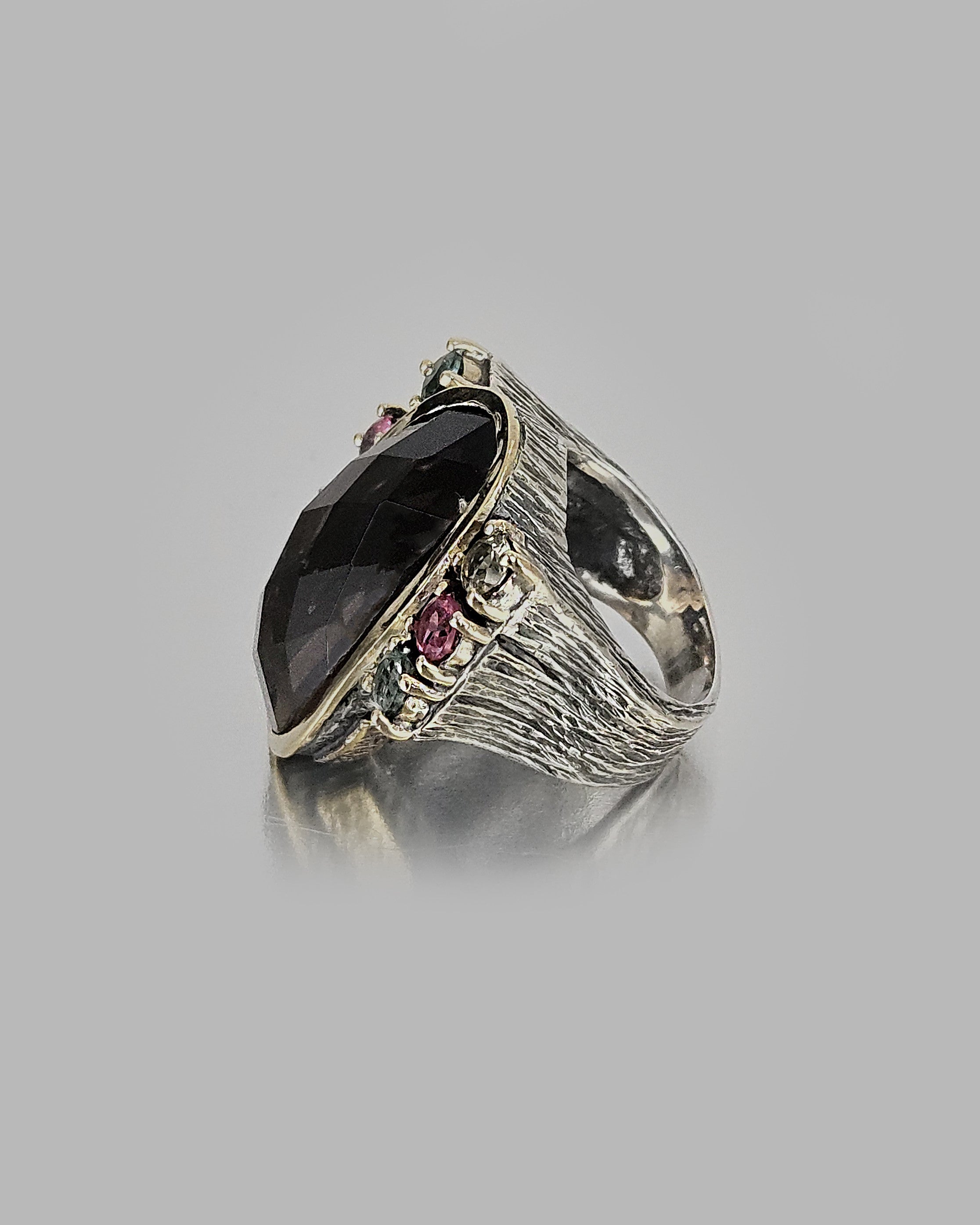 Diseño realizado a mano sobre plata de ley y detalles en oro