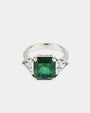 Sortija de plata con pieza central en talla princesa color verde esmeralda