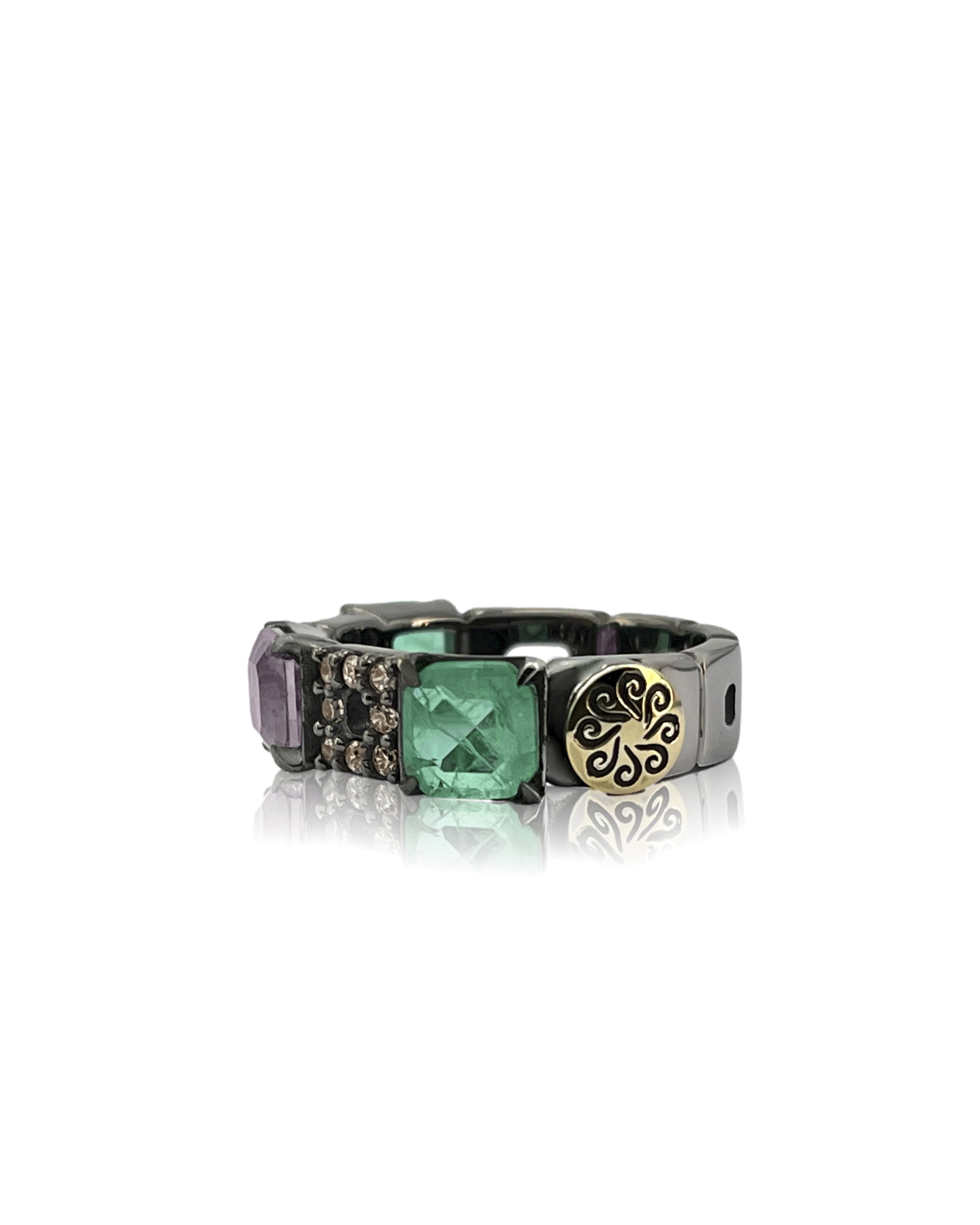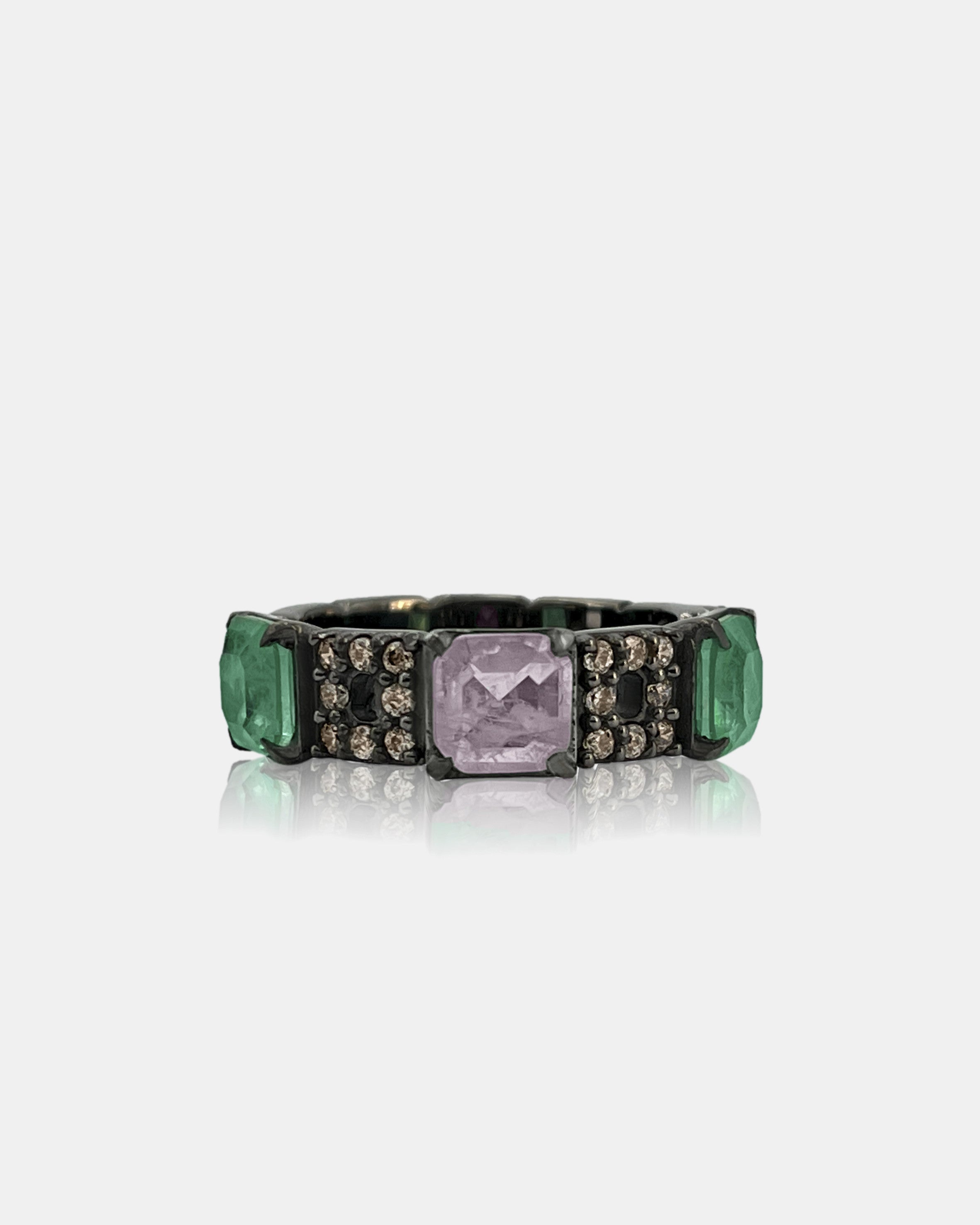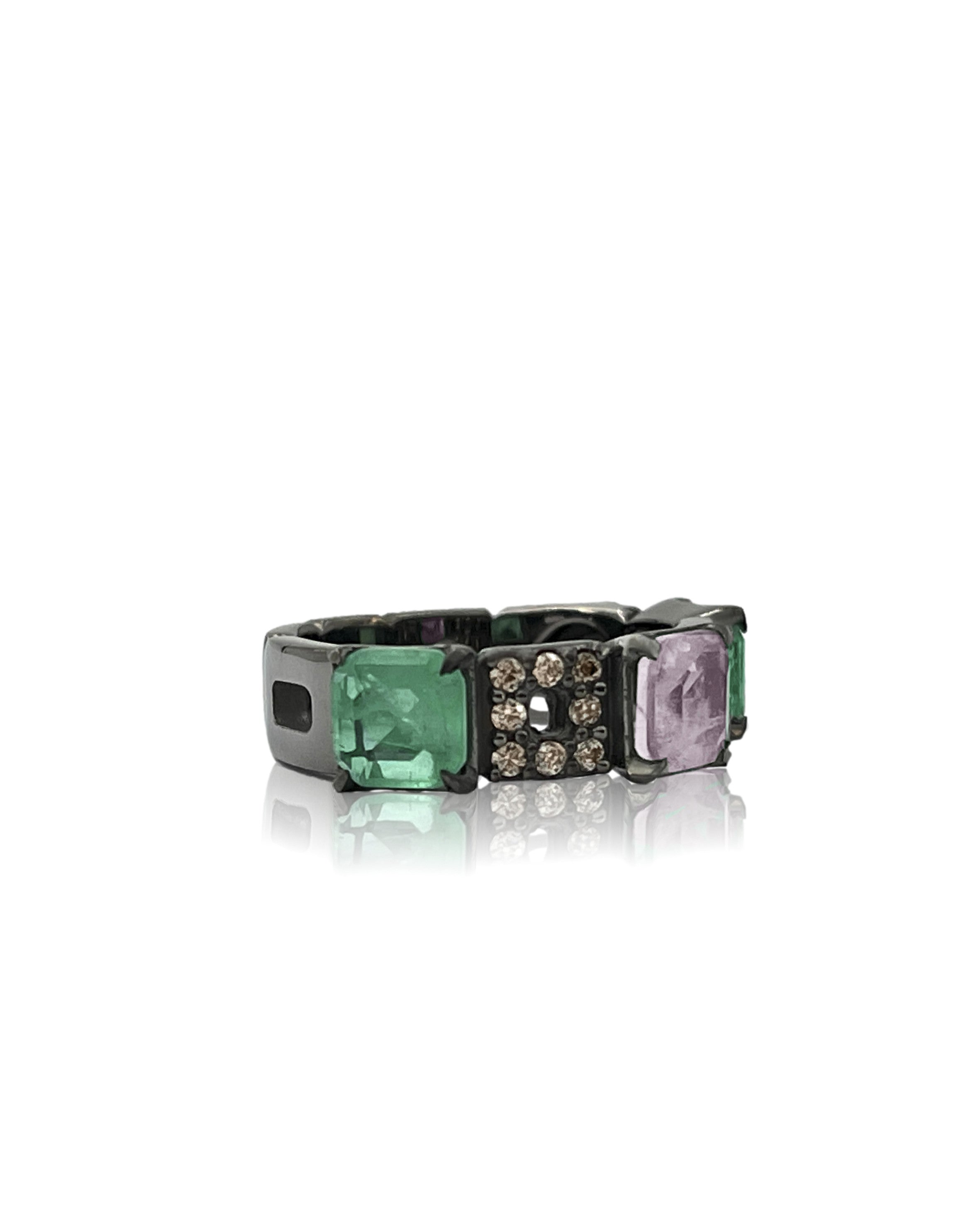 Piedras semipreciosas de dobletes de cuarzo esmeralda y rosa con circonitas en color champán